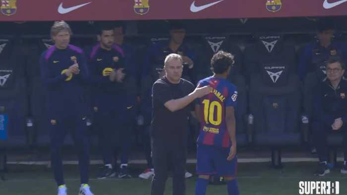 相比比赛结果,赛后更受关注的是第82分钟的一次换人。当时亚马尔被拉什福德换下,DAZN捕捉到了他离场时的画面。这位年轻球员在走向替补席的过程中表情严肃,对教练组的决定明显不满,并向工作人员表达情绪:“总是这样……总是我。”也有声音指出,亚马尔的不满情绪或与场上的判罚有关,并不完全针对换人决定。
